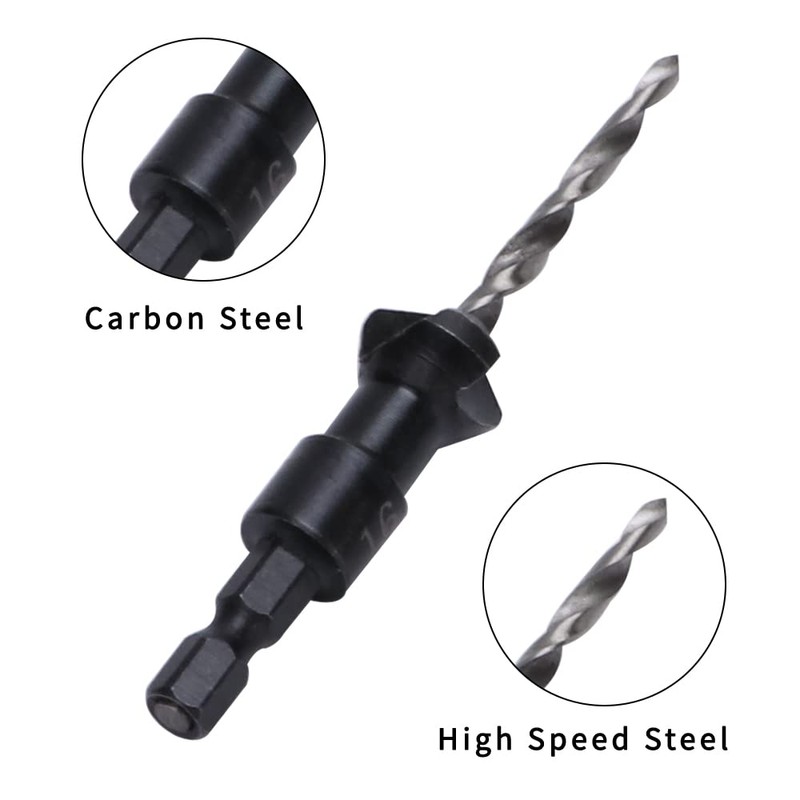 - Countersink Drill Bit Set: The Combination Drill Tap Deburr Bit Set includes 4 pcs carpentry reamers in 4 different size (# 6/ 10/ 13/ 16) and 1 pc hex key. With numbers on the drill bits for easy recognition can meet your different needs.