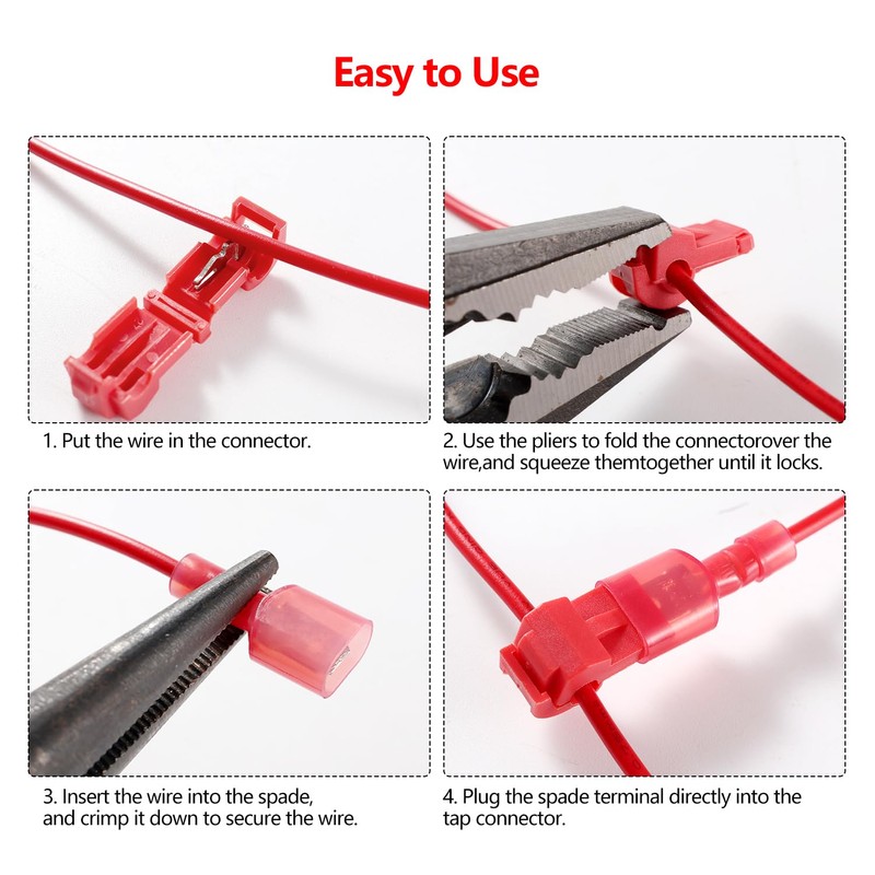 • Easy to Use: Simply insert the wires and squeeze them with pliers, then a reliable and secure connection is done, very fast and easy, without stripping or soldering.