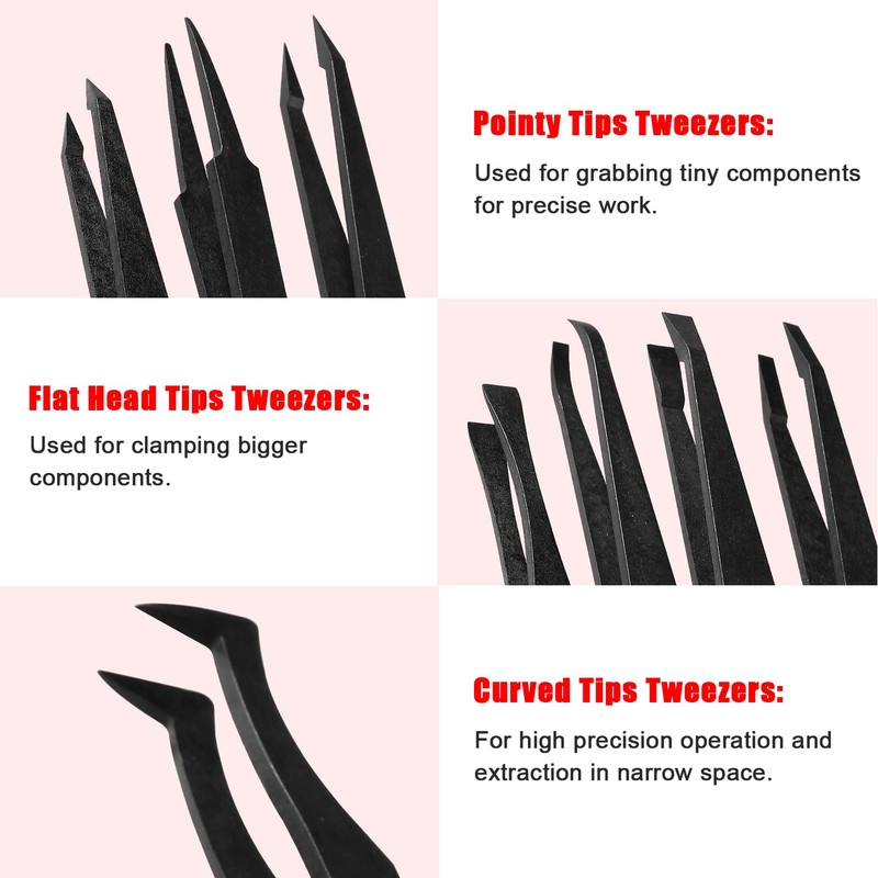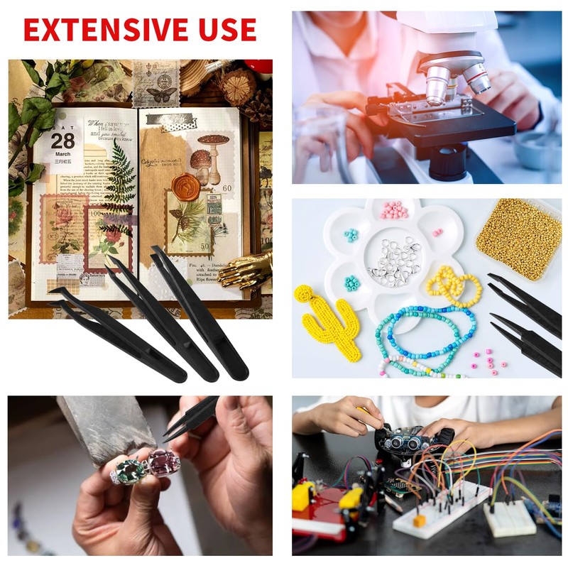 - Premium Material: Made from durable ABS resin, tweezers are wear resistant. It also features anti-static and anti-magnetic properties, ensuring safety during use.