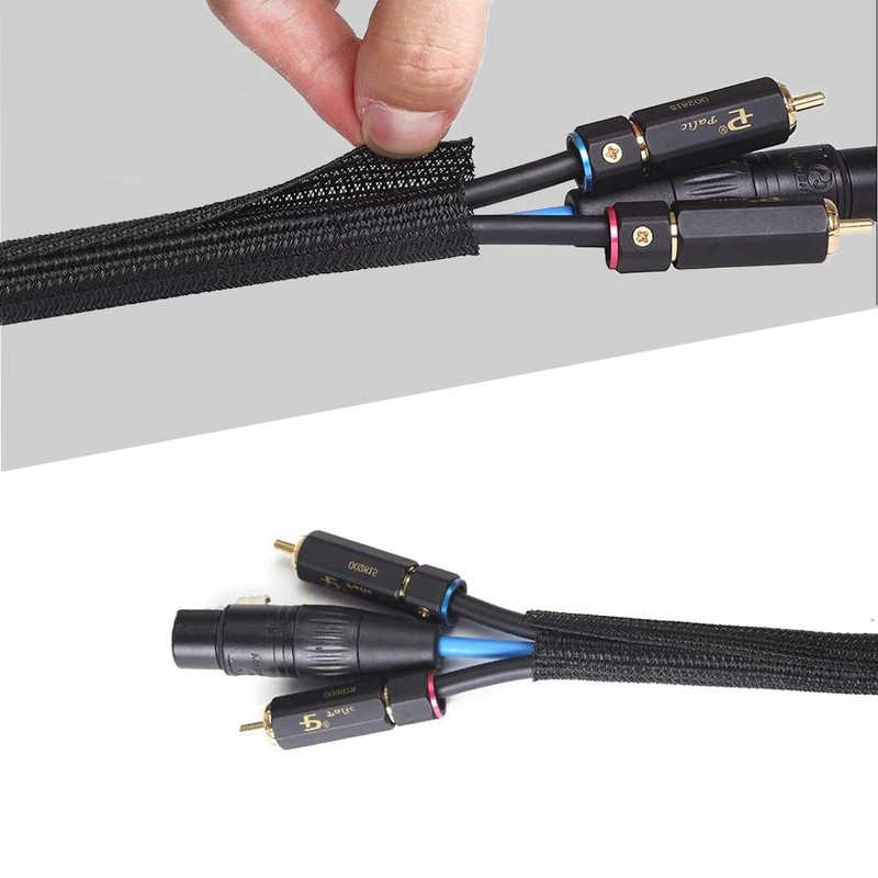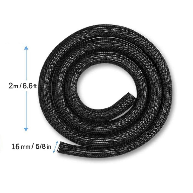YIXISI Length 2 m, Diameter 16 mm Cable Organiser, Woven Cable Sleeve, Cable Hiding, Cable Management, for Home, Office, PC, TV Cable (Black)