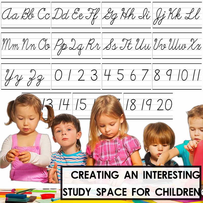 - Recommended By Teachers: The cursive alphabet bulletin board set is designed to help students learn the alphabet and proper manuscript letter formation. Perfect as a year-round alphabet reference, for word walls, and for language arts centers. Teacher approved perfect learning aid for educators teaching children