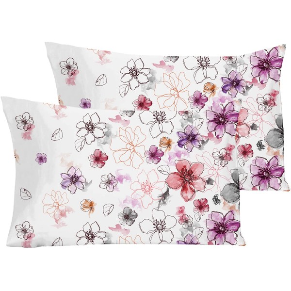 YIYEA Pillow Cases Queen Size Set of 2, Ultra Soft Double Brushed Microfiber Pillowcases Queen, Floral Bed Pillow Covers, Fade Resistant, Easy Slip-On (20"x30")