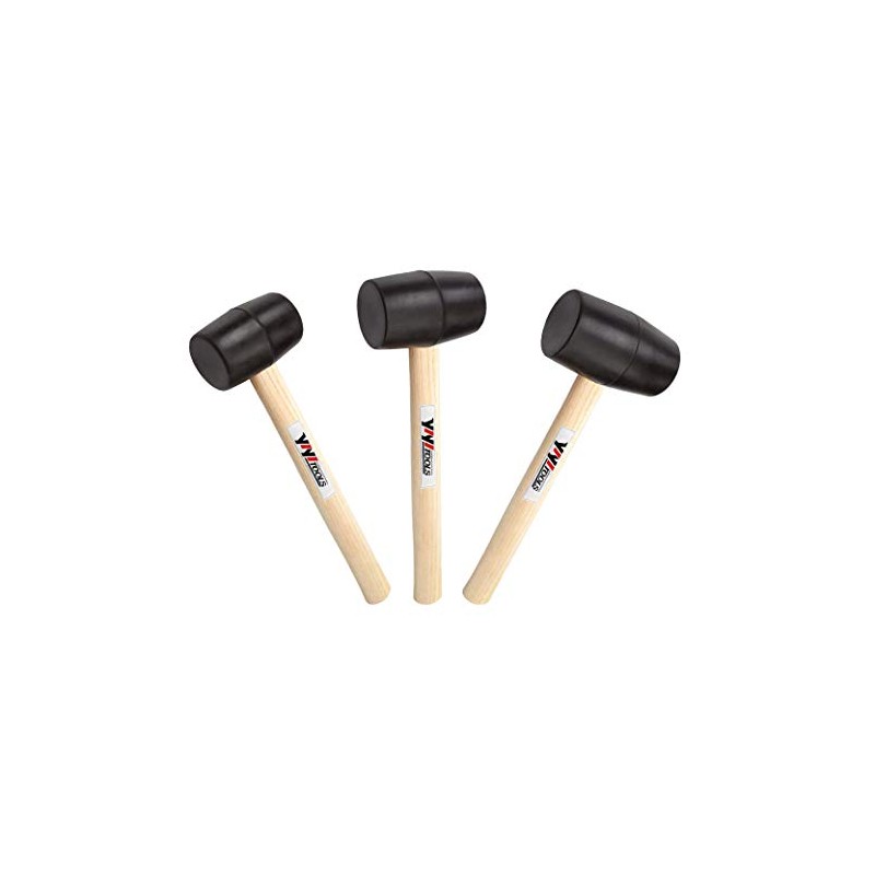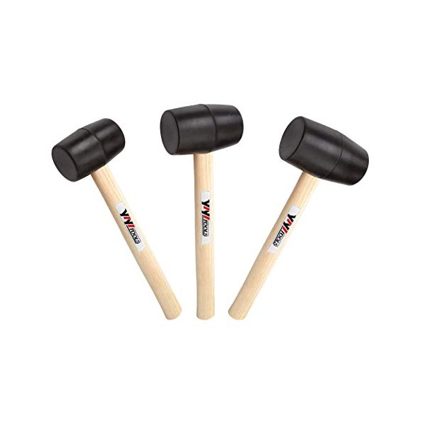 YIYITOOLS Rubber Mallet Set With Wood Handle,3 Piece/8oz,16oz & 24oz,Black ,Lightweight and Durable