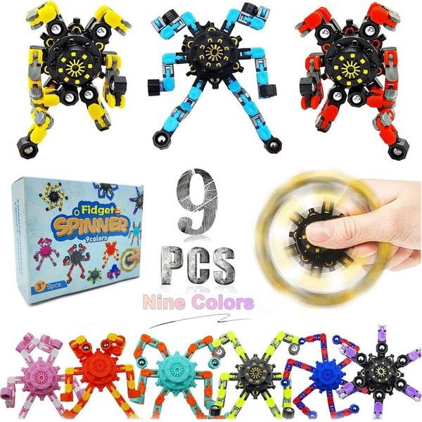 YIZER Easter Basket Stuffers Transformable Fidget Spinners,9Pcs Funny Sensory Fidget Toys Adults Deformable Chain DIY Robot Spinner,Fingertip Stress Relief Gyro Toy Easter Basket Stcoking Stuffer for Kids