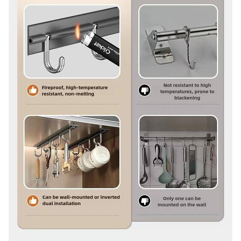 - Versatile: This set of hooks and utensils is designed for organizing and storing kitchen tools conveniently within reach.