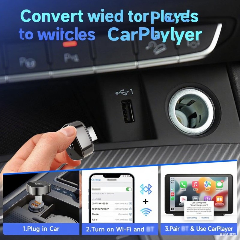 - 1. Before You Buy: ① Works only with cars that have factory-wired CarPlay— make sure your vehicle supports it first! ② Compatible with iPhone 6 or iOS 10 and above ③ Please turn on both Wi-Fi and Bluetooth, and keep them free from other device connections during use