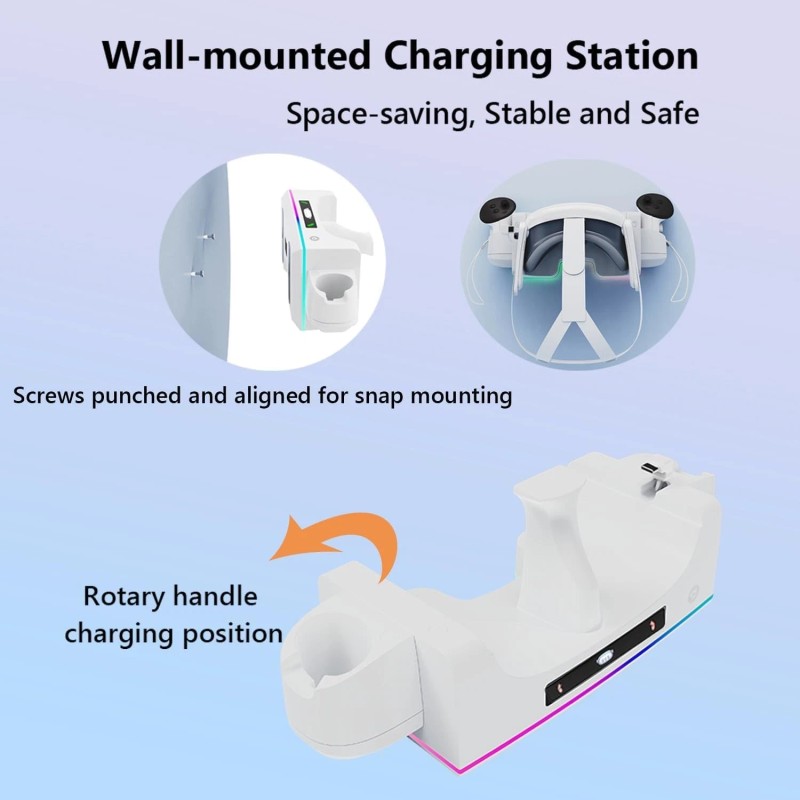 • Wall mounted: You can install the meta quest 3s charging dock on a wall or other vertical surface to save space and keep your meta quest 3 and its accessories organized.