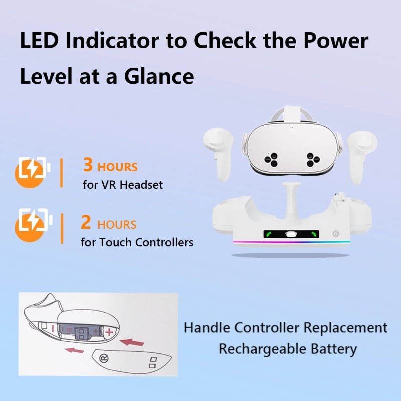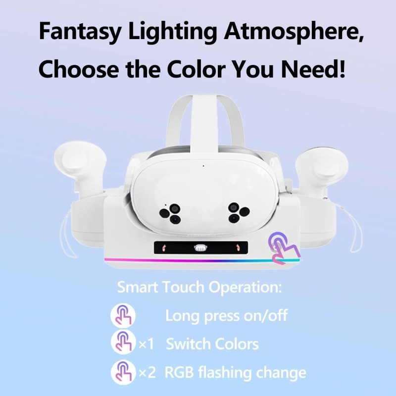 • Charging led indicator light: The led display of the meta quest 3s charging dock touch switch can intuitively show the charging status of your device, allowing you to keep track of the charging progress at any time.