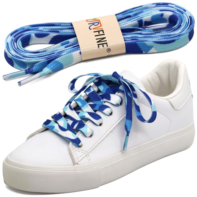 YJRVFINE Gradient Rainbow Shoelaces Fashion Colorful British Style Shoestring Blue Camouflage Shoe Laces String(1 Pair) 47.24"