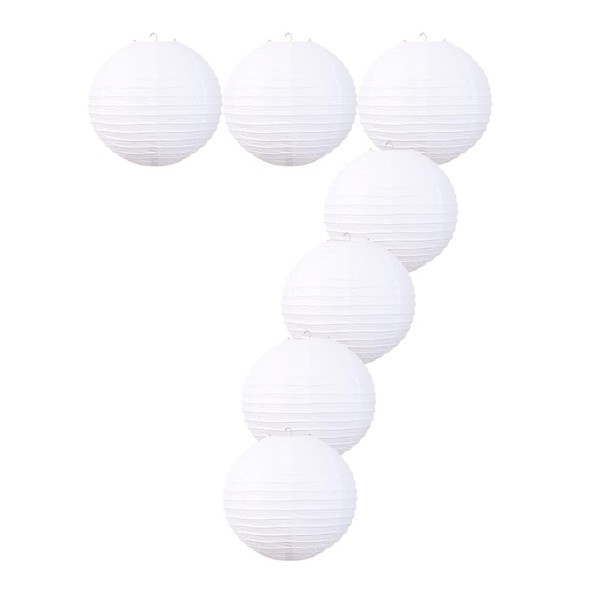 YJUQ Chinese Japanese Style Paper Lanterns, Set of 7 (White, 10inch)