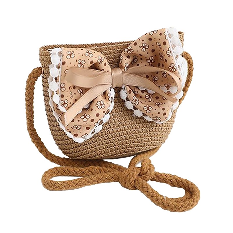 YJZQ Strohhut, Set mit Sonnenhut und Tasche, Strandmütze, Prinzessinnen-Stil, Schleifen, niedlich, 50 – 52 cm, weiche Mütze, großes Visier, atmungsaktiv, für Reisen, kaki, 50/52 cm