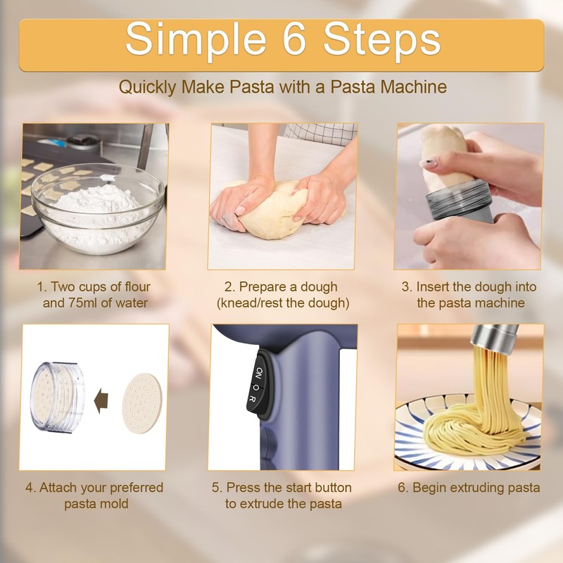 - EFFORTLESS AND QUICK NOODLE PREPARATION: With the Handheld Electric Pasta Maker, you can effortlessly press out 200 grams of fresh noodles in just 20 seconds. This efficient noodle press machine saves you time and energy, allowing you to focus on creating delicious meals without the hassle of traditional pasta-making methods