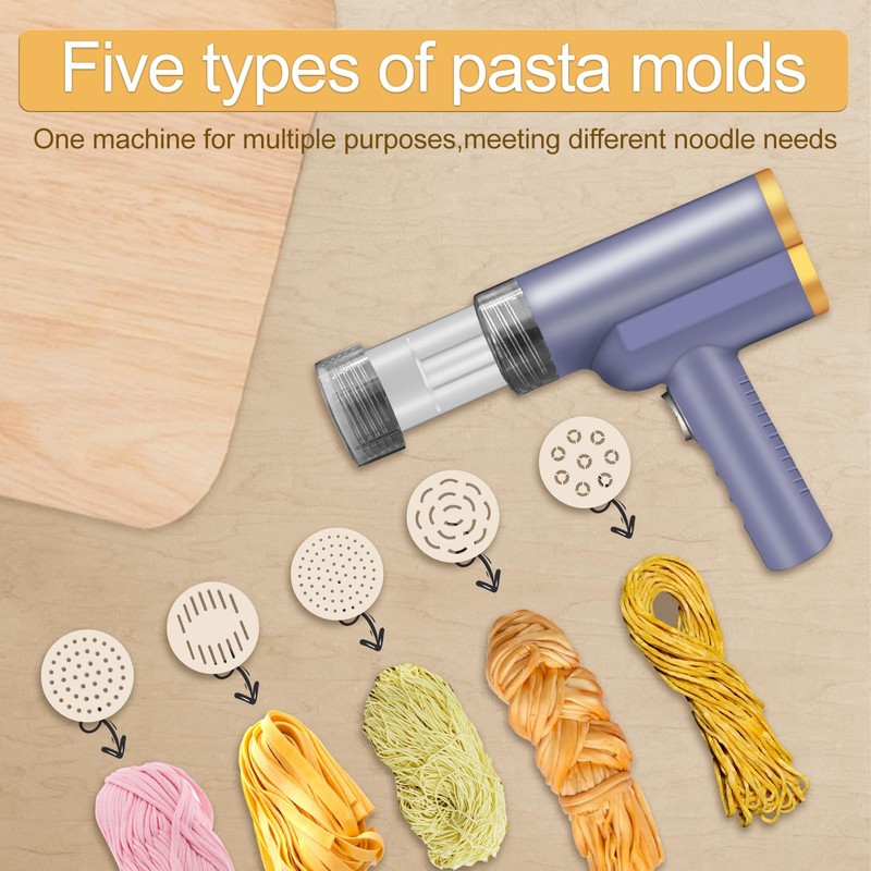 - MULTIFUNCTIONAL 5-IN-1 DESIGN: The Handheld Electric Pasta Maker offers an innovative 5-in-1 design that allows you to create a variety of noodles, including spaghetti, fettuccine, angel hair, lasagna, and square pasta. Enjoy the flexibility to impress your family and friends with homemade pasta that caters to everyone's taste preferences during family gatherings or outdoor picnics