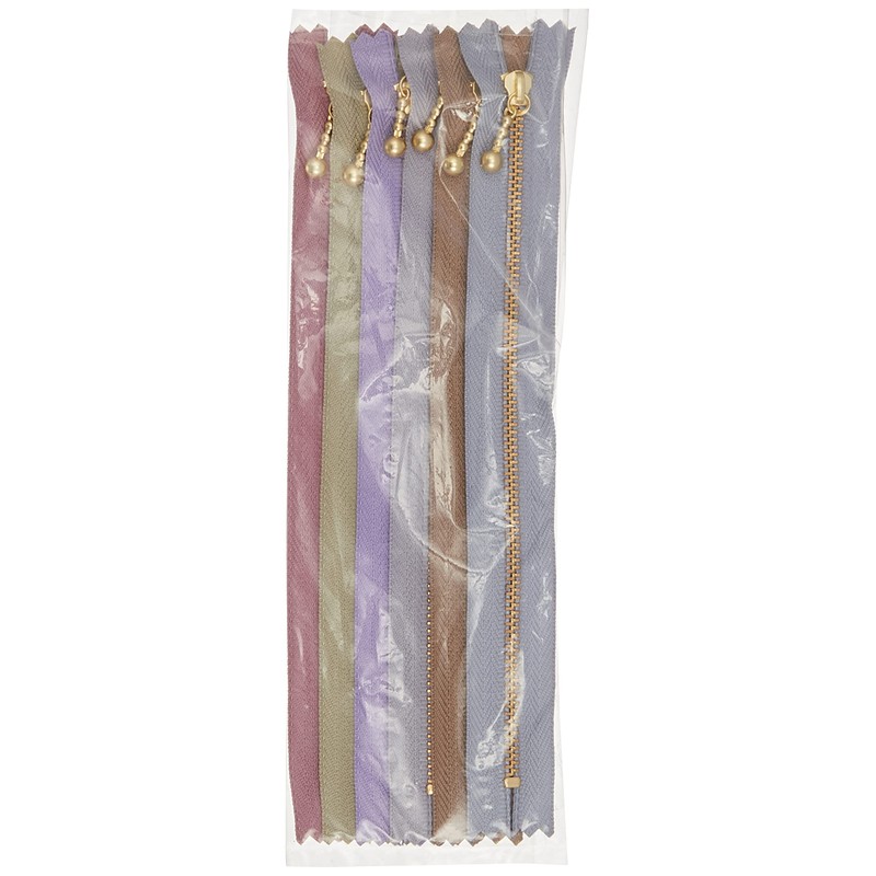 - A value set of 6 colors with a cute metal zipper with a ball. The popular "nuance colors" calm tones create a sophisticated piece. Recommended for use with bags, pouches, etc