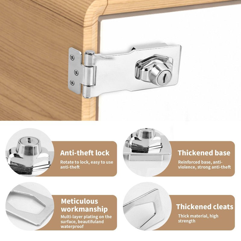- MATERIAL: Twist knob keyed locking hasp is made of zinc alloy, smooth surface, no burrs, does not hurt hands, durability, corrosion-resistant