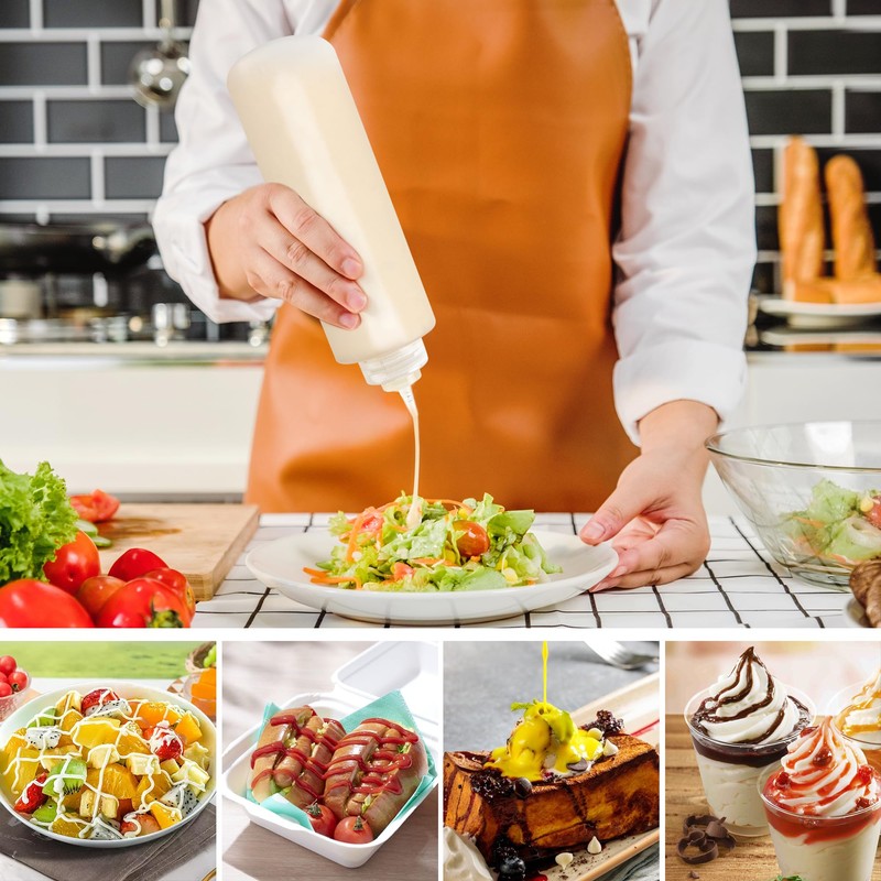 - Wide application: Squeezing bottles with puzzles for sauces are suitable for all liquid seasonings, such as adding cream, jam, honey, mustard, mayo, ketchup, hot sauce, soy sauce, cooking oil, pancake mix, maple syrup, salad dressing, barbecue sauce, peanut butter
