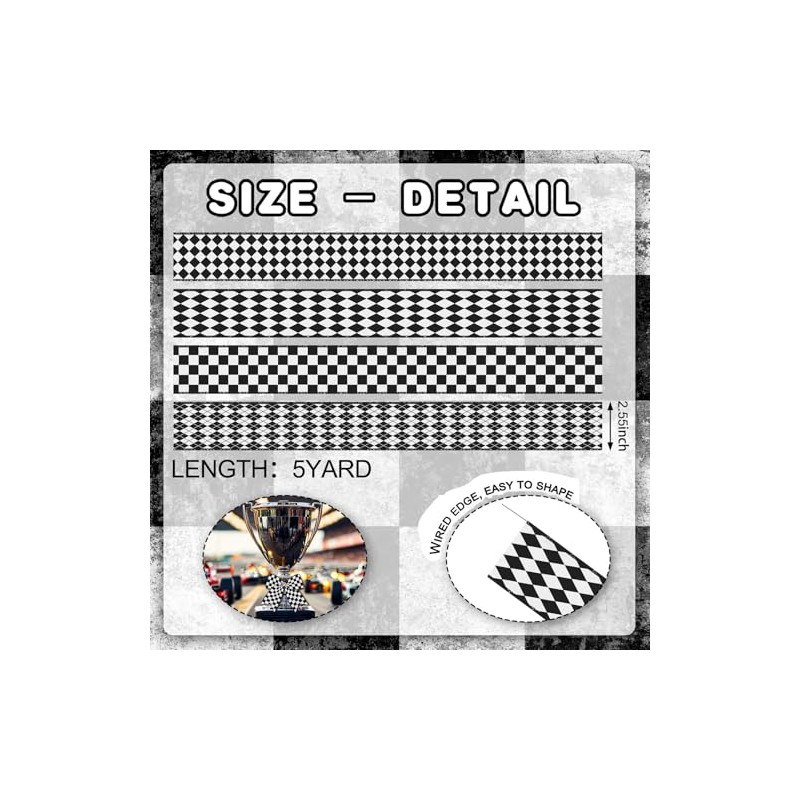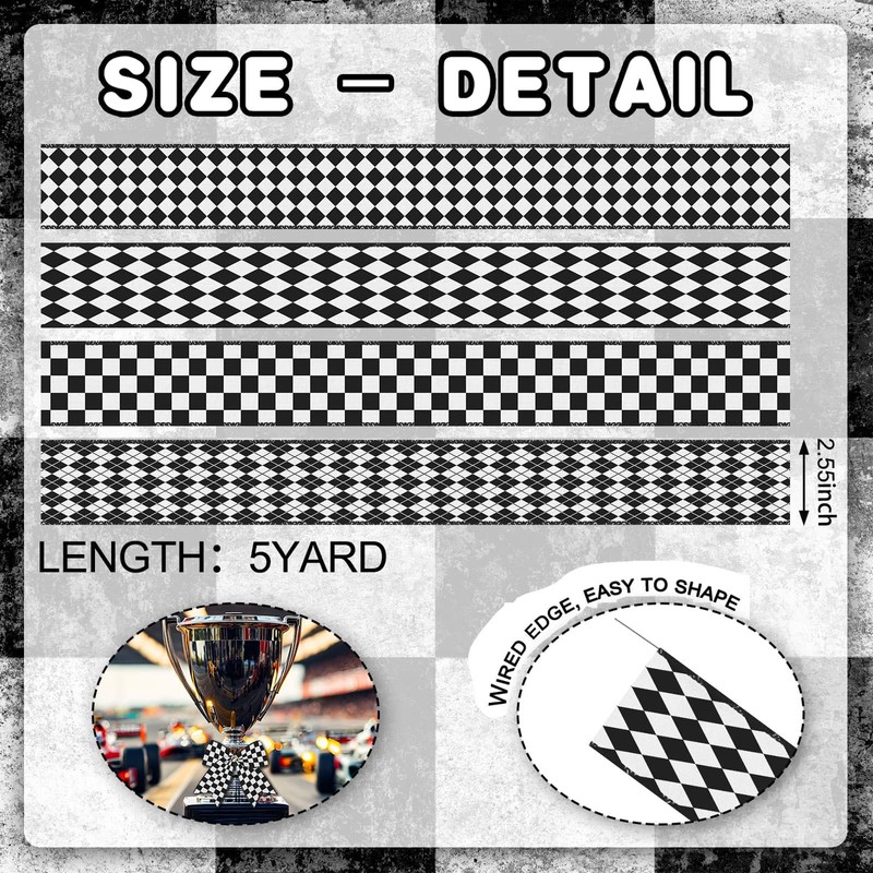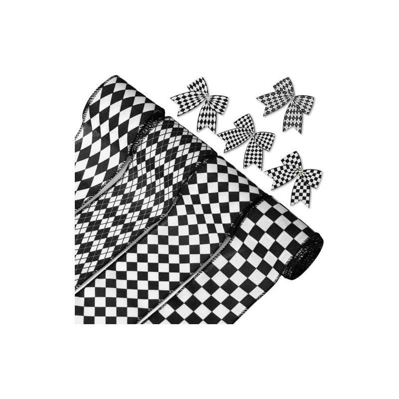 - Premium Checkered Pattern Set: Includes 4 rolls of black and white ribbons featuring classic checkered racing plaid diamond and buffalo check designs perfect for modern decor and racing themed events