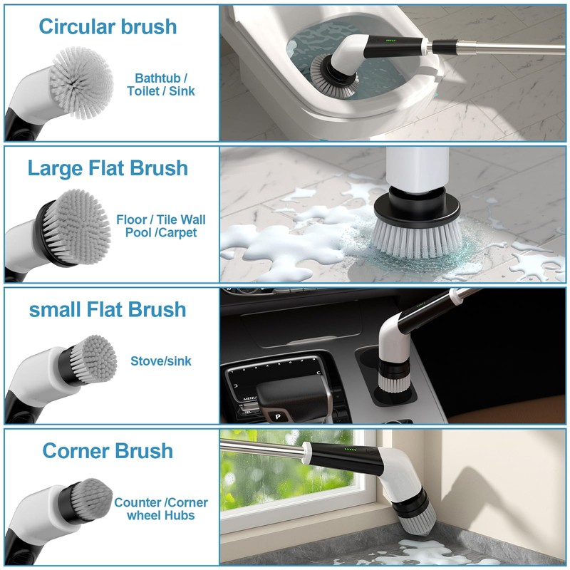 - Complete Cleaning Kit with Pro-Grade Durability:Engineered with reinforced PC bristles to minimize shedding and extend lifespan. Each brush head withstands rigorous scrubbing on high-speed settings, ensuring consistent results across bathrooms, kitchens, and outdoor surfaces.