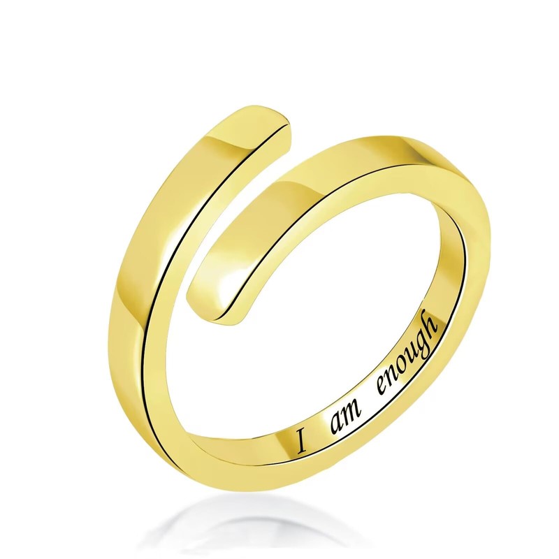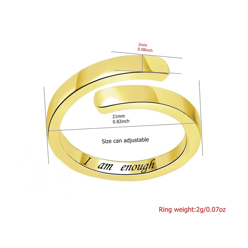 YKYLHSYXR Women's Inspirational Hug Ring for Lover - I am Enough Engraved Hugging Rings, Love and Crafted Hug Ring, Open Ring for Encouragement Jewelry Gifts, Adjustable size to 6 7 8 9 10, Brass, No Gemstone