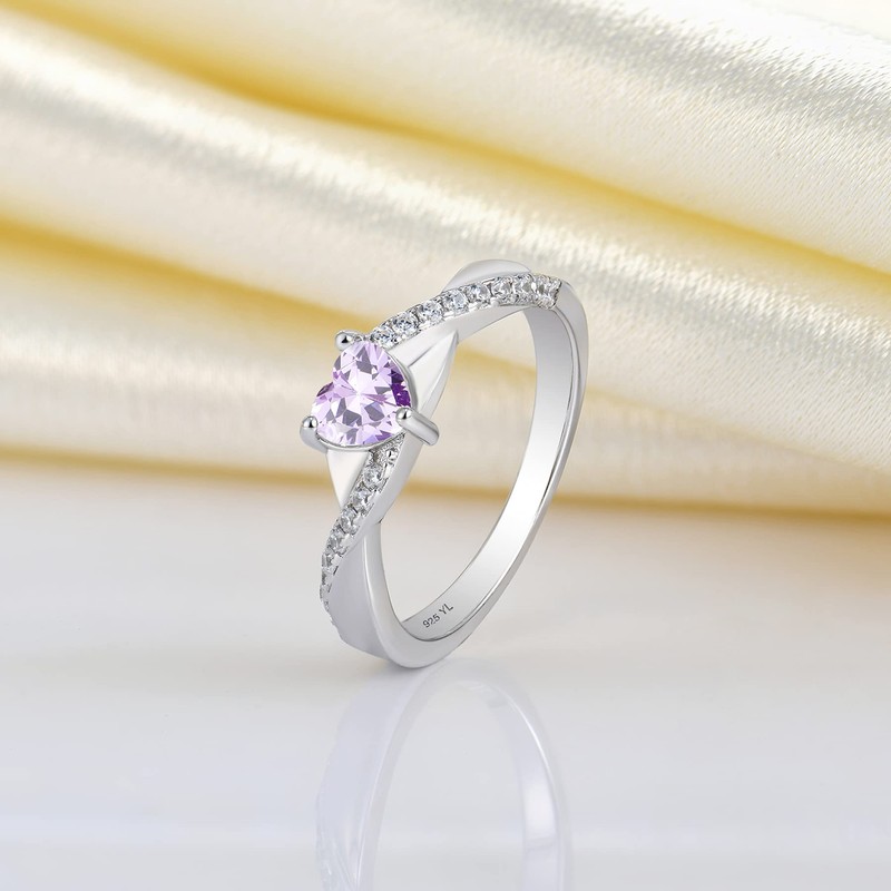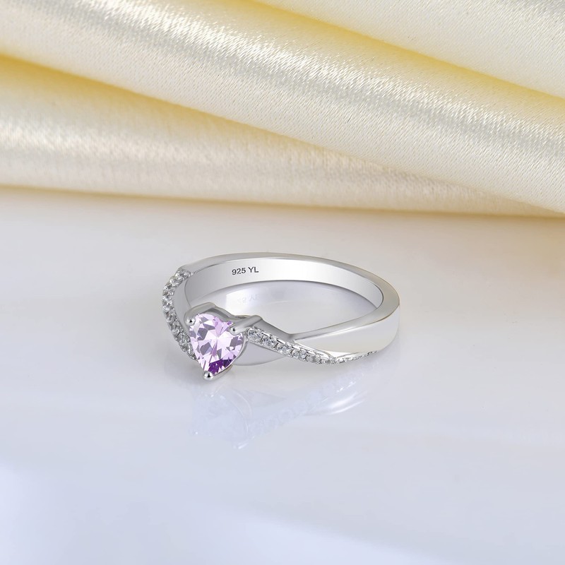 YL 925 Sterling Silver Engagement Rings 5MM Heart Cut Birthstone Infinity Ring for Women-size5, Sterling Silver, Created Alexandrite