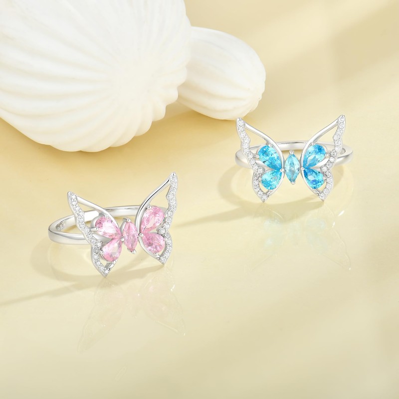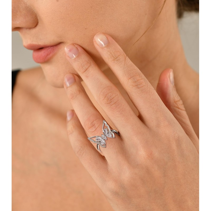 YL Butterfly Rings 925 Sterling Silver Simple Statement Ring Cubic Zirconia B...