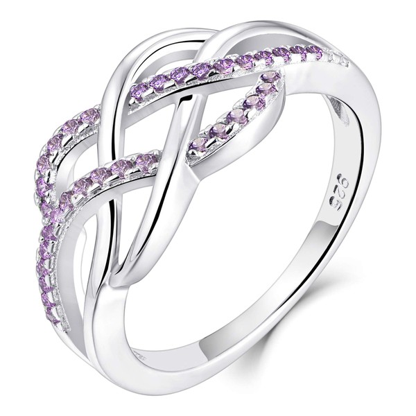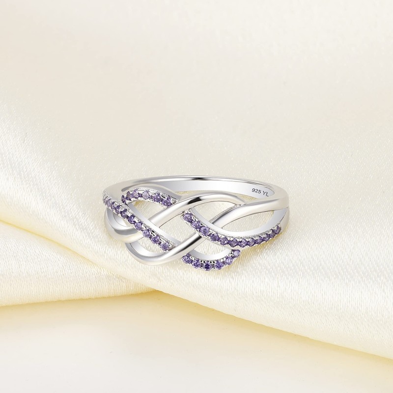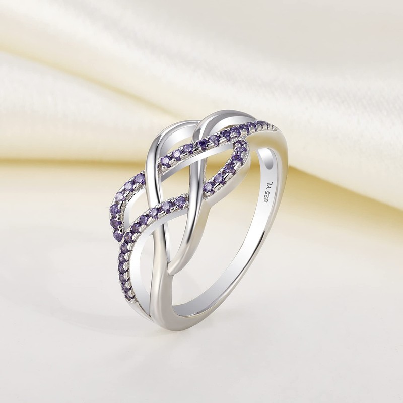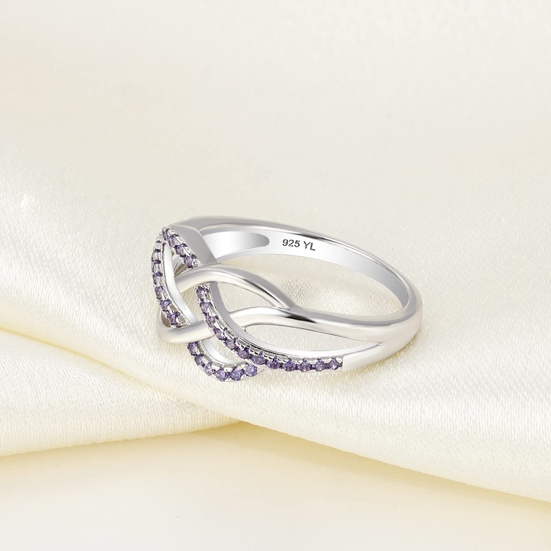 YL Celtic Knot Rings 925 Sterling Silver Twisted Knot Ring 18k White Gold Plated Created Amethyst Infinity Statement Rings-size7