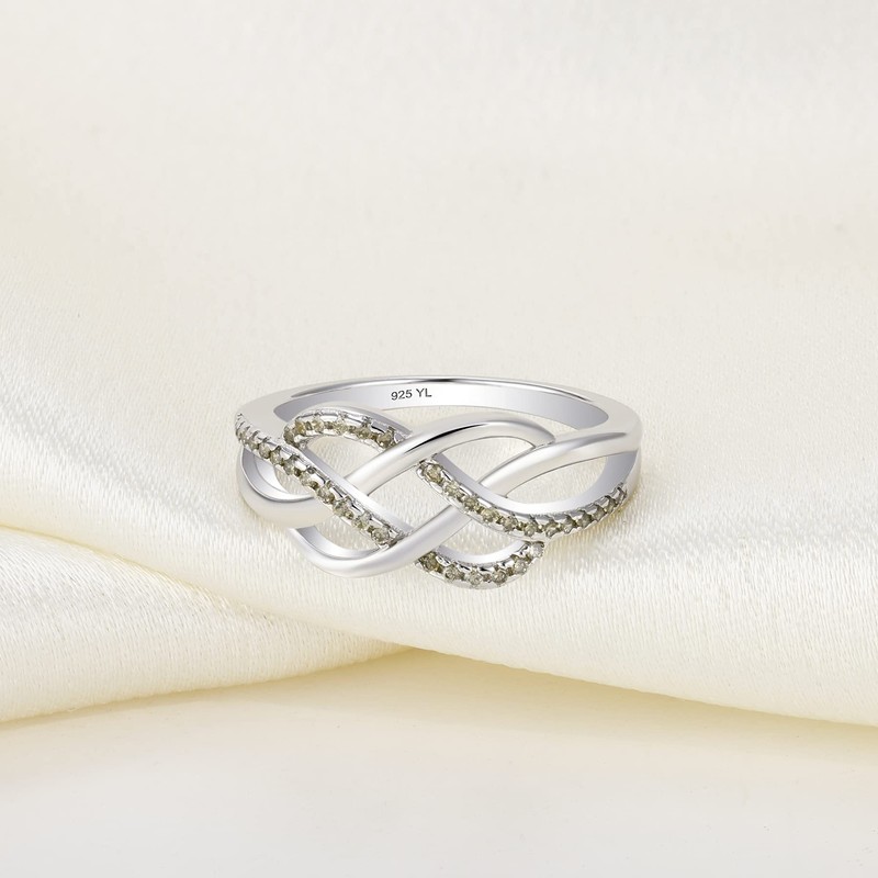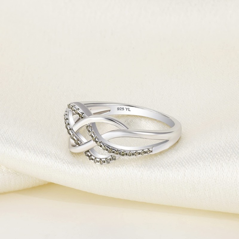 YL Celtic Knot Rings 925 Sterling Silver Twisted Knot Ring 18k White Gold Plated Created Peridot Infinity Statement Rings-size10