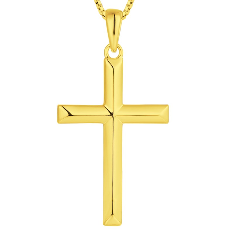 YL Cross Necklace for Women Sterling Silver Plain Cross Pendant Necklace 0.98'' Jewelry Gifts for Men-Gold, Metal, Cubic Zirconia