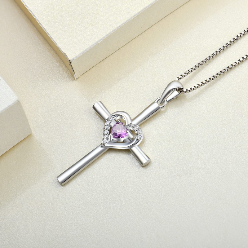 YL Heart Cross Necklace Sterling Silver Crucifix Pendant Created Amethyst Criss Jewelry for Women