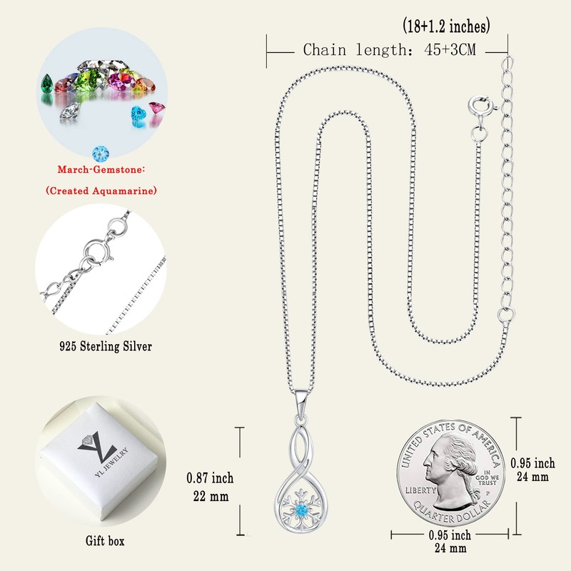 YL Infinity Snowflake Pendant Necklace for Women 925 Sterling Silver Created Aquamarine Snowflake Jewelry Sets Gifts for Christmas