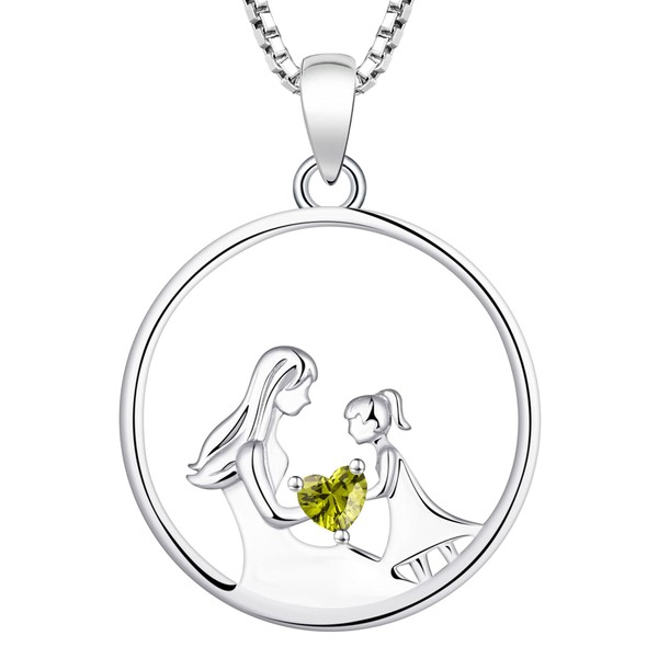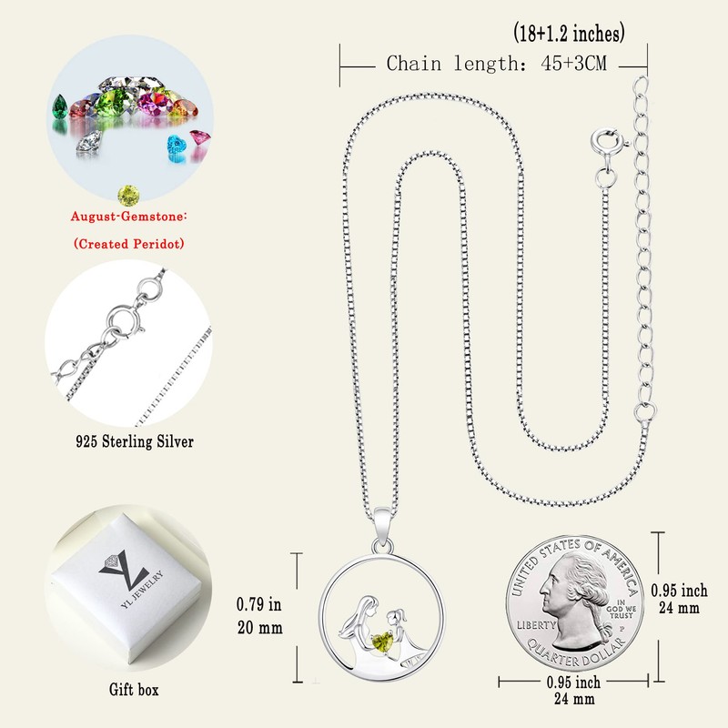 YL Mother Necklace 925 Sterling Silver Round Mom Pendant Created Peridot Jewelry for Women