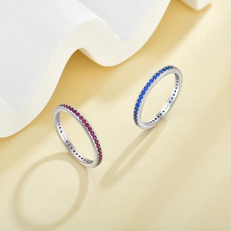 YL Women's Stackable Ring 925 Sterling Silver Stacked Rings 1.25mm Birthstone Eternity Bands, Metal, Ruby