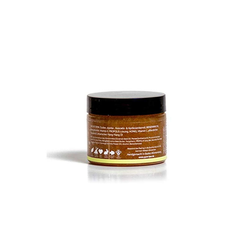 Ylang-Ylang Body Scrub with Beeswax, Propolis & Honey | "Hi, I'm Happy-go-lucky!" | 2-in-1 Body Scrub: Cleansing + Lotion | Handmade in Baden-Württemberg | PureBee (Ylang-Ylang, 100g Jar)