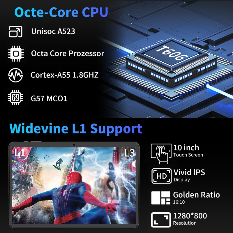 - 【8000mAh long-lasting battery】This 10-inch tablet is equipped with an 8000mAh large-capacity battery and supports Type C low-temperature fast charging. The intelligent power saving mode allows you to control the rhythm of watching movies, games or processing documents without frequent charging, and long-lasting battery life.