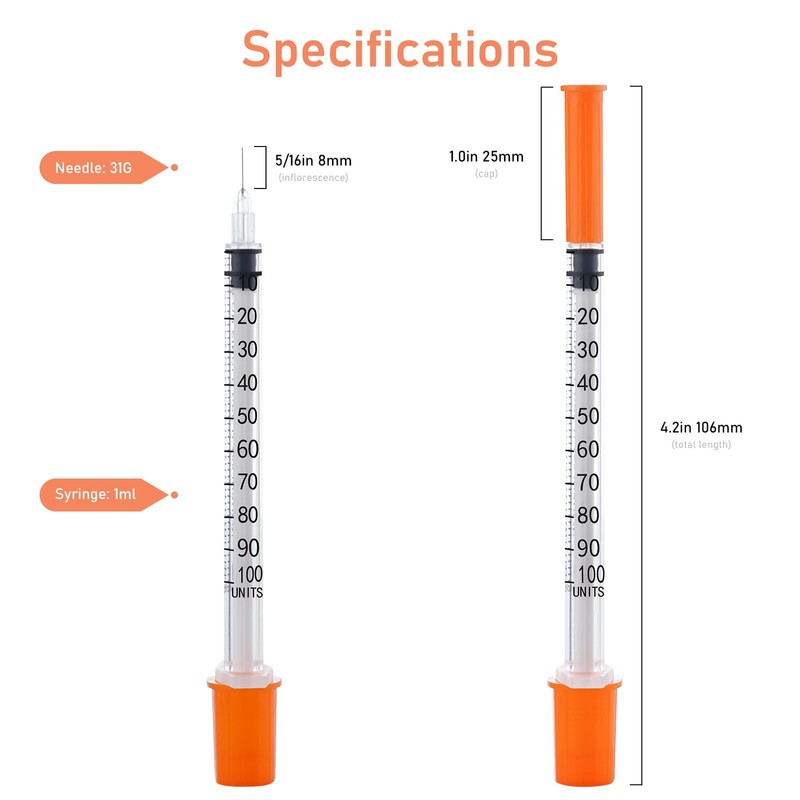 - 【Individually Package】20 pack 1cc syringe with 31Ga 5/16Inch 8mm is individually sealed packaging, sterile gauze pads individually sealed packaging,pack of 20.