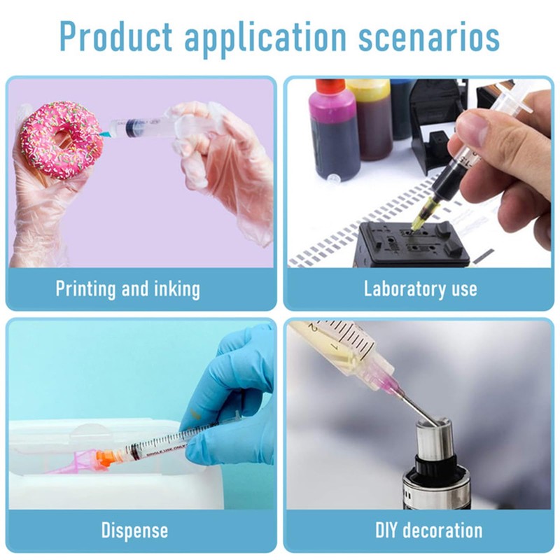 Applicable: Suitable for all standard syringes for scientific laboratories, industry, teaching and research, experimental use, plant cultivation, filling and dispensing of liquids such as CA glue, adhesive, oil, ink, etc.