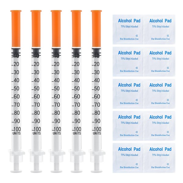 Ylemnf U 100 1cc Syringe 1ml 31 Gauge 5/16 Inch 8mm with Disposable Gauze Pads, Individual Package, 20 Pack