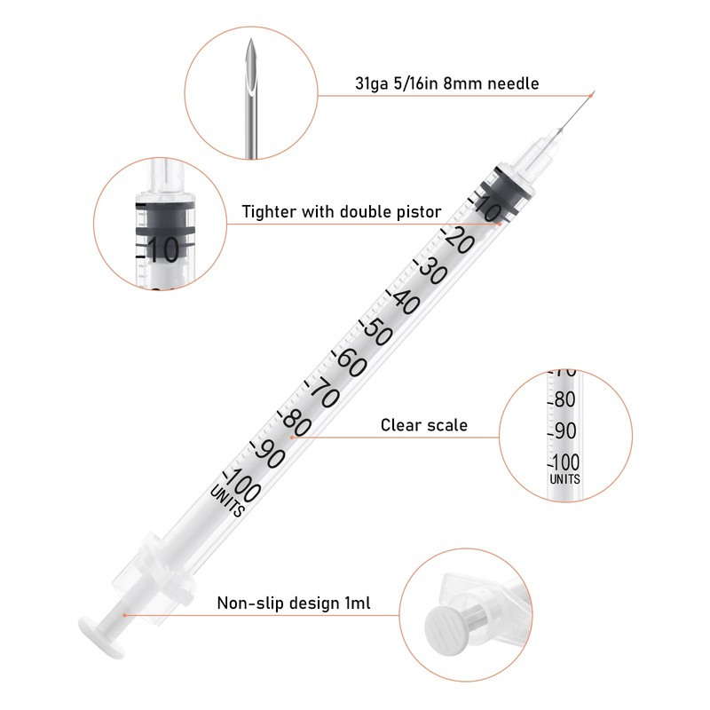 1ml Syringe with 31Ga 5/16in 8mm, Individually Wrapped, Pack of 20