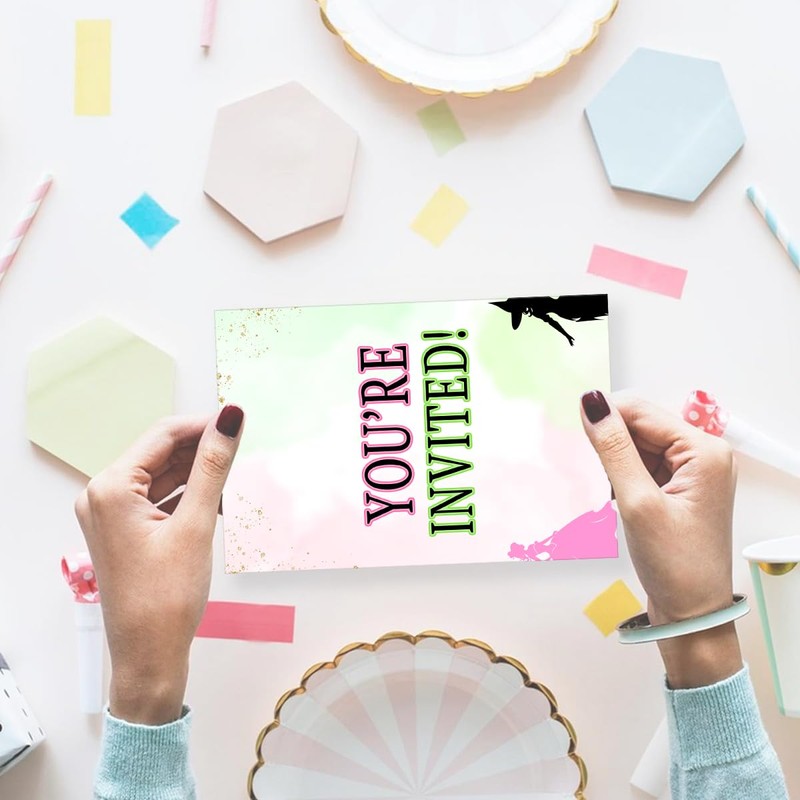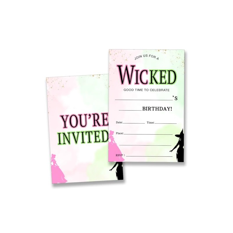 YLKJSTYS Pink and Green Wicked Party Invitations Adults Teens Wicked Theme Bi...