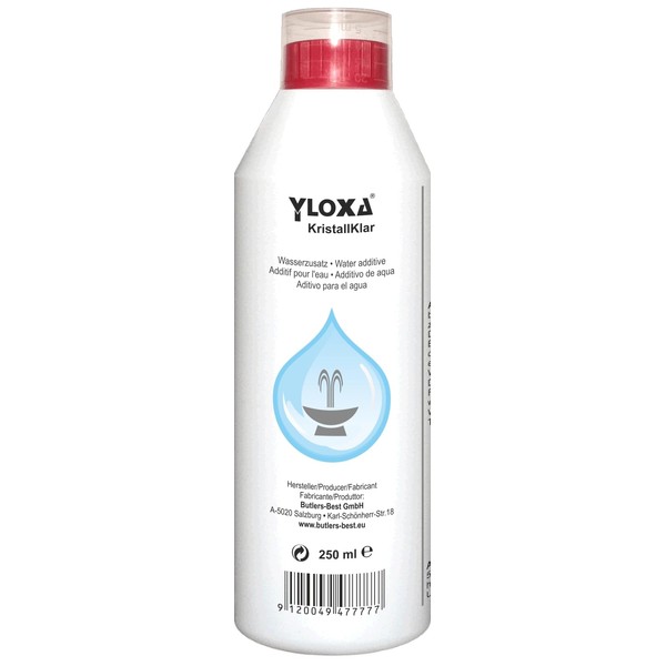 Yloxa KRISTALLKLAR - Water additive concentrate for wells, walls of water, water-columns, water-cascades and nebulizers for both indoors and outh - 250 ml bottle