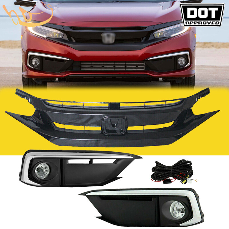 YLT Auto For 2019 2020 Honda Civic Glossy Black Front Headlight Eyelid Molding Trim Pair