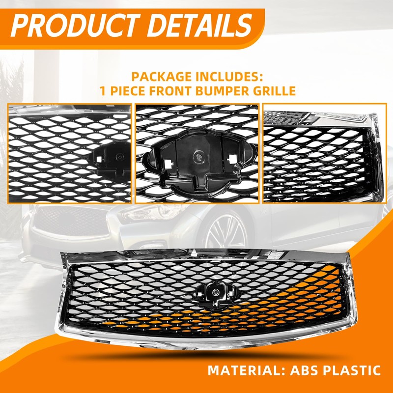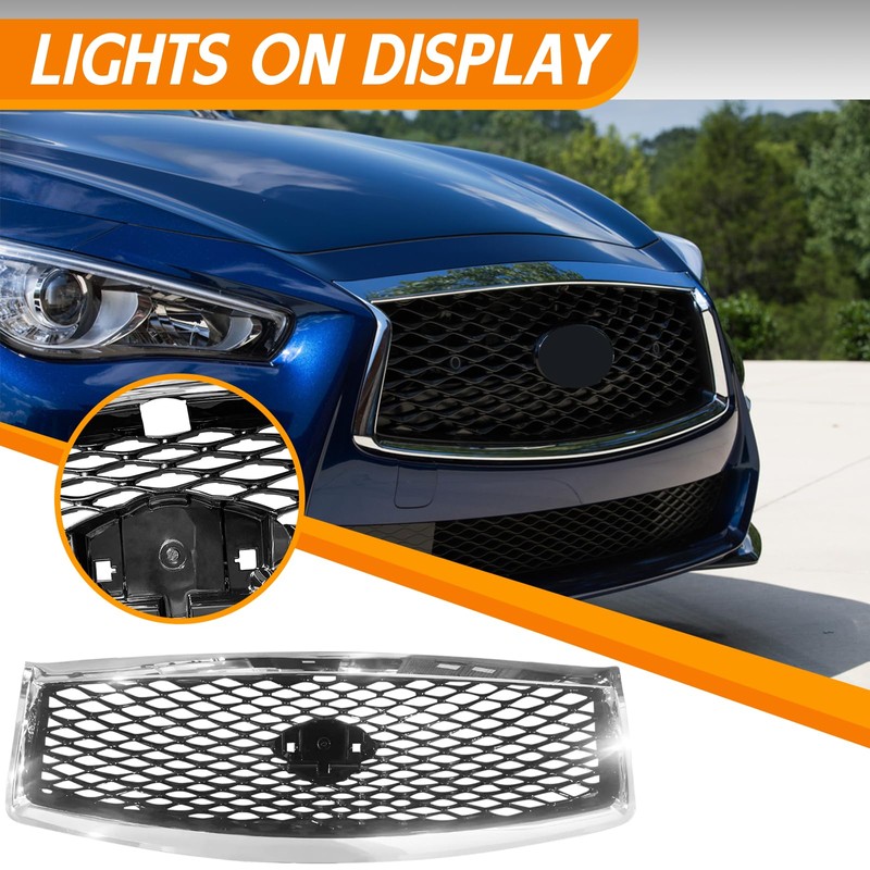 - Vehicle Applicability: Fit 2014-2017 for Infiniti Q50.Package includes: a front bumper grille.