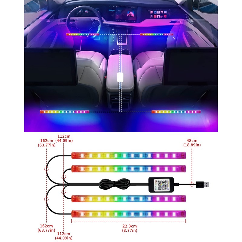 YM E-Bright RGB LED Strip Lights for Car App Control with Remote Led Lights car Interior with Charger Music Sync Under Dash Footwell Neon Lighting Kit w/USB Cable DC 12V