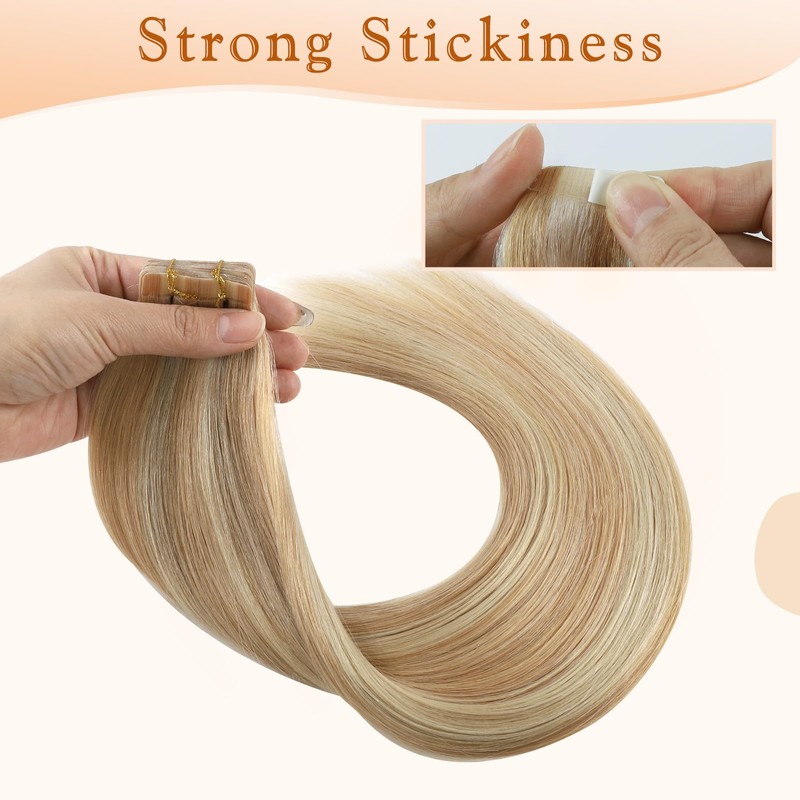 - Premium Remy Human Hair: 9A grade real virgin human hair ymeyme tape in hair extensions. YMEYME tape in human hair extensions maintains their softness and smooth, glossy shine, and silky texture, and is no-tangle and no-shedding with proper care