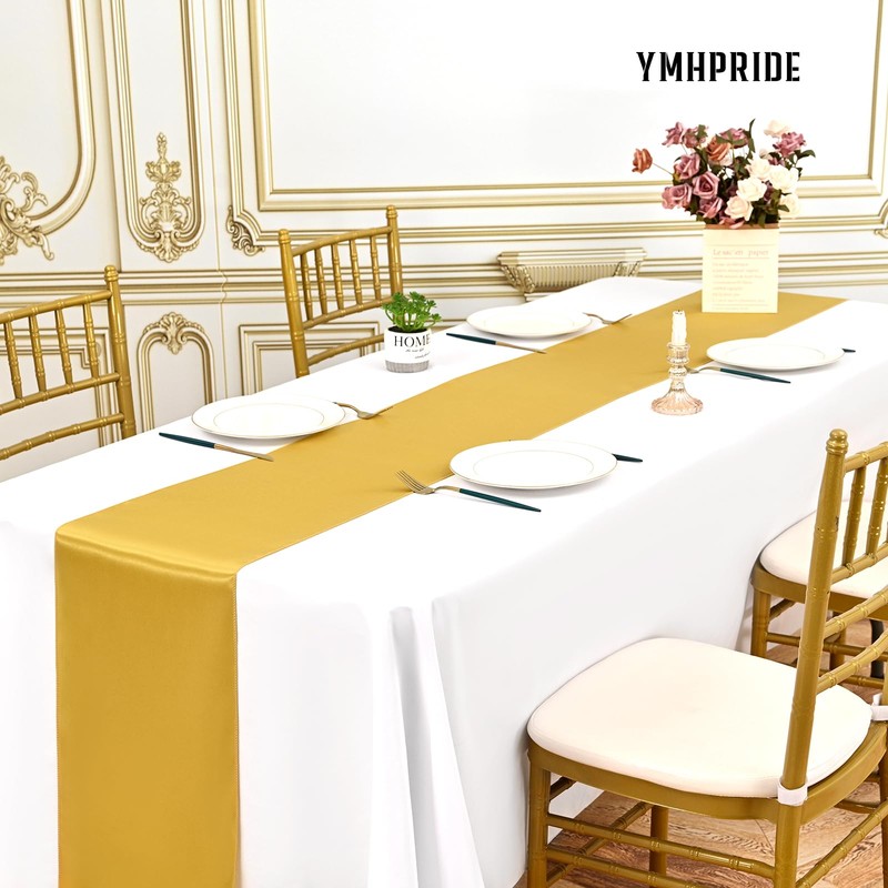 YMHPRIDE 8 Pack Gold Table Runner Satin Table Runner, 12x72 Inch Long Silk Table Runner for Wedding Party Birthday Banquet Table Decoration