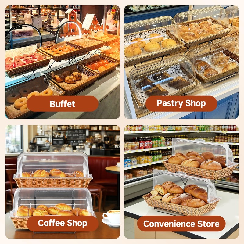 - 【Elevated Visual Storytelling】 A clear dome and woven trays transforms fresh breads or pastries into eye-catching centerpieces. Ideal for bakeries, brunch buffets, or café counters, it highlights your offerings while complementing rustic-chic or contemporary decoration themes.