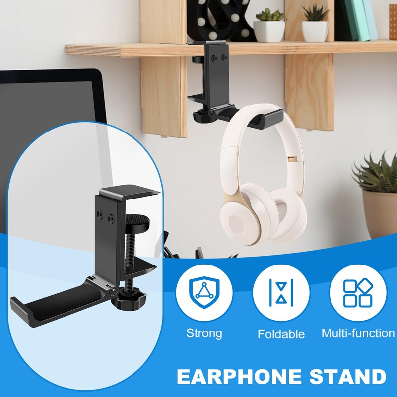 YMKWZ 1PCS Headphone Stand Hanger Holder, Foldable Aluminum Desk Headphone, Universal Space Saving Headset Stand Multifunctional Under Desk Hanger for Home Office
