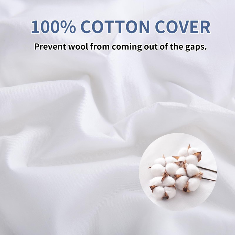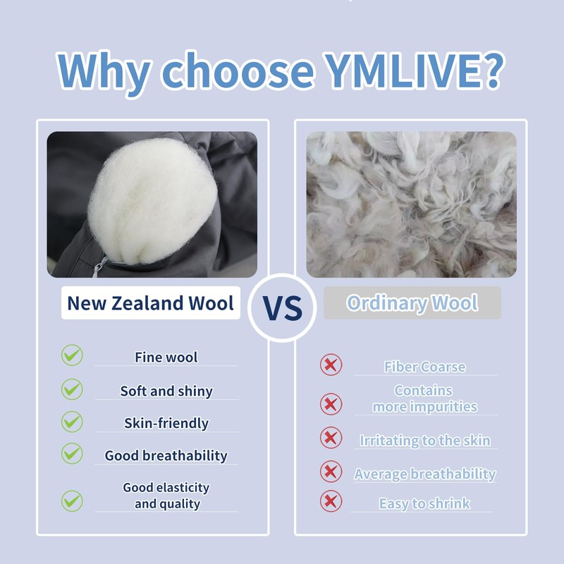 - 【Noiseless】 YMLIVE lightweight wool is filled with 100% natural wool and 100% natural cotton shell. The average diameter of the wool does not exceed 25um. The cotton shell is soft and noiseless, allowing you to enjoy a quiet and comfortable sleeping environment and enter the sweet sleep without interference.