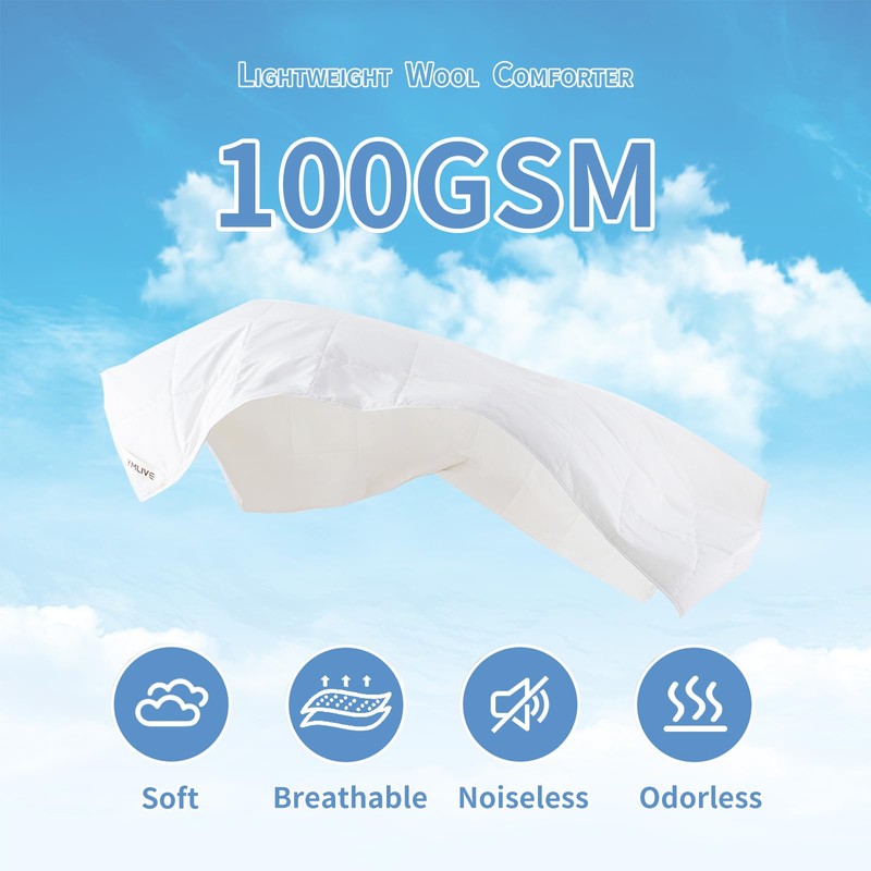 - 【Suitable for Summer】Queen size 90x90 inches, The lightweight design of 100GSM makes the YMLIVE comforter an ideal choice for summer. Wool fiber is light, soft, naturally breathable, helps dissipate heat, maintain a comfortable body temperature, and avoid overheating.