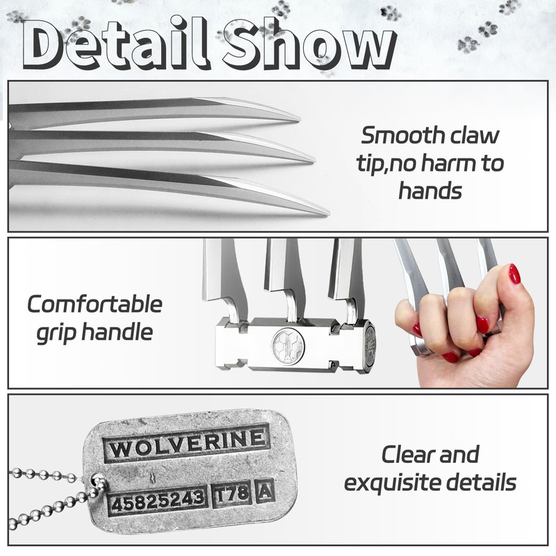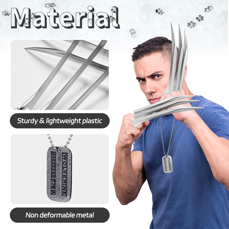 • Purpose:Plastic wolverine claws are suitable for cosplay events and can also be used as birthday or holiday gifts.This Super Wolf Claws can surprise your superhero or wolf series enthusiasts and bring them a smile.